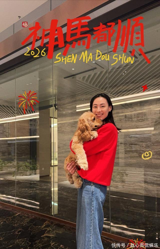 只见许久未露面的梁洛施身穿一件大红色上衣,搭配一条深蓝色牛仔裤,抱着爱犬对着镜头向网友们拜年。看得出,自从再次恋爱后,梁洛施的状态变得越来越好了。
